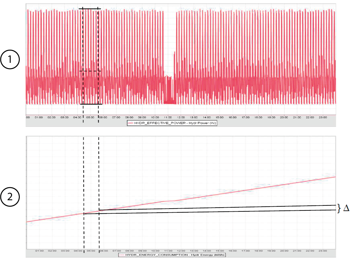 For example: the electricity consumption of a machine during the early shift, the electricity consumption of the machine during the setup of a job.
