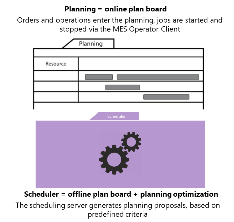 By means of the scheduler, the planning can automatically be optimized based on a number of definable criteria. This is done by taking the live planning offline, generating the best possible planning and putting the planning back online.Figure: Scheduler