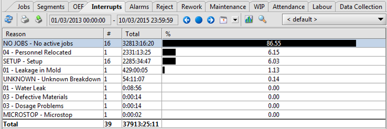 For example: 80% of the downtimes can be caused by 20% of the interrupt reasons.