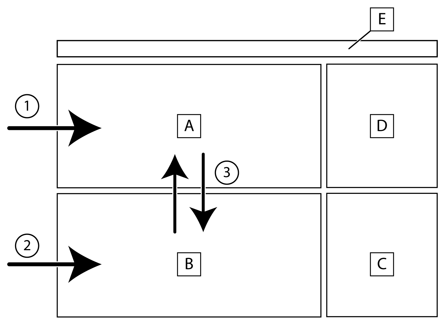 The screen of the Planning tab consists of a toolbar (E) and 4 panes: